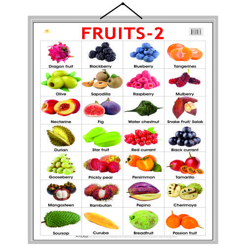 This bright and attractive Fruits-2 Educational Chart introduces children to a variety of delicious and healthy fruits. It features colorful pictures of fruits such as different berries and more with their names. The chart helps young learners improve their vocabulary, picture recognition, and early learning skills. It is perfect for nursery and preschool children and is ideal for use at home or in the classroom. 🍎🍌🍇